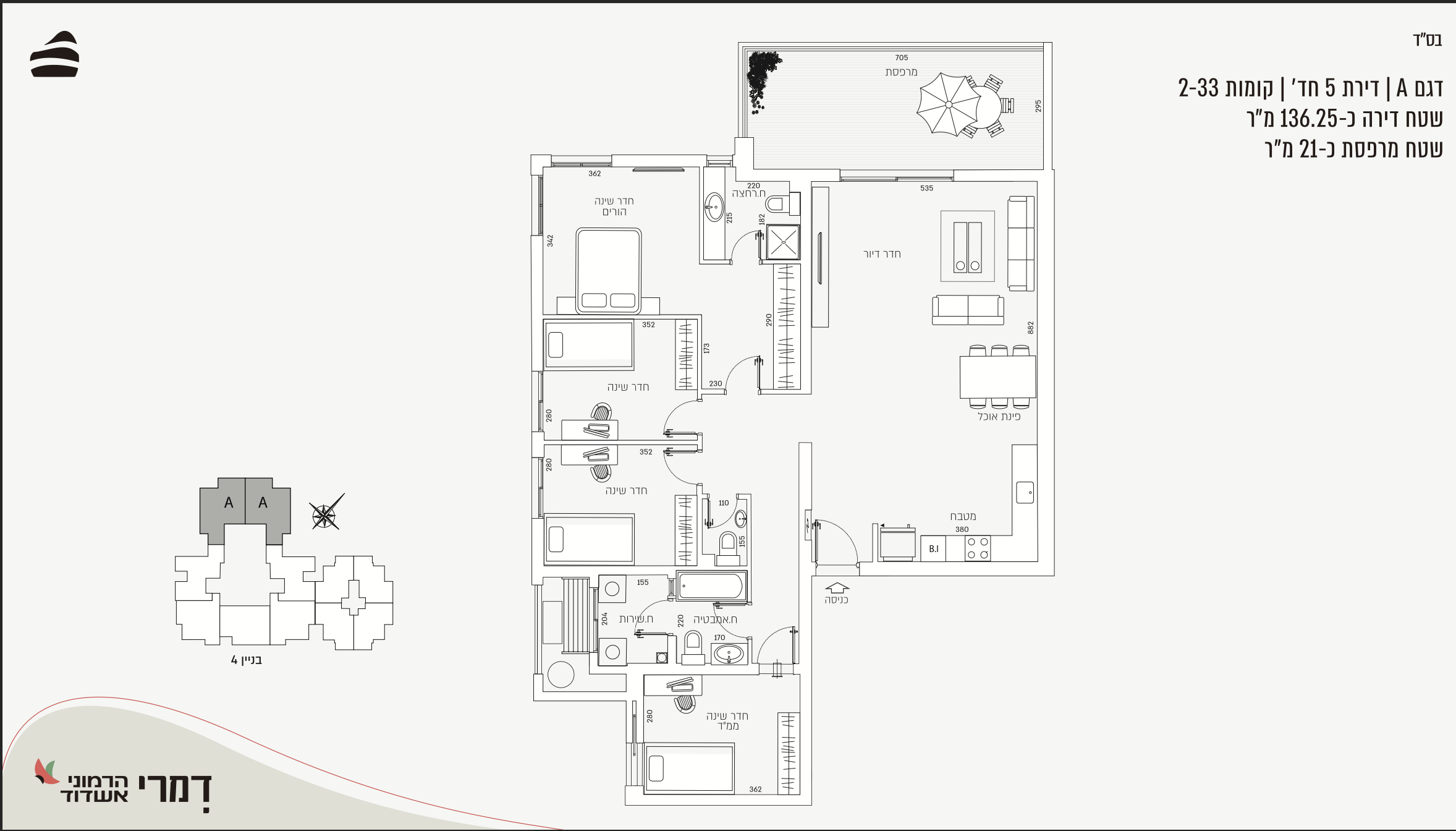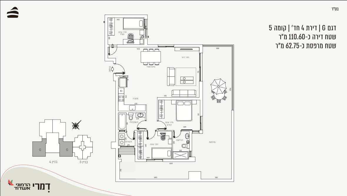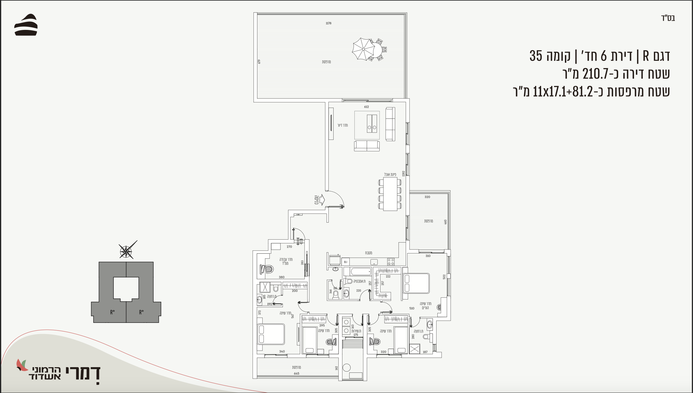 גולת הכותרת של הפרויקט החדש של חברת י.ח דמרי באשדוד היא קומת גג עליו ישתרע פארק מטופח הכולל צמחיה מוריקה ופינות רגועות לרווחת הדיירים.